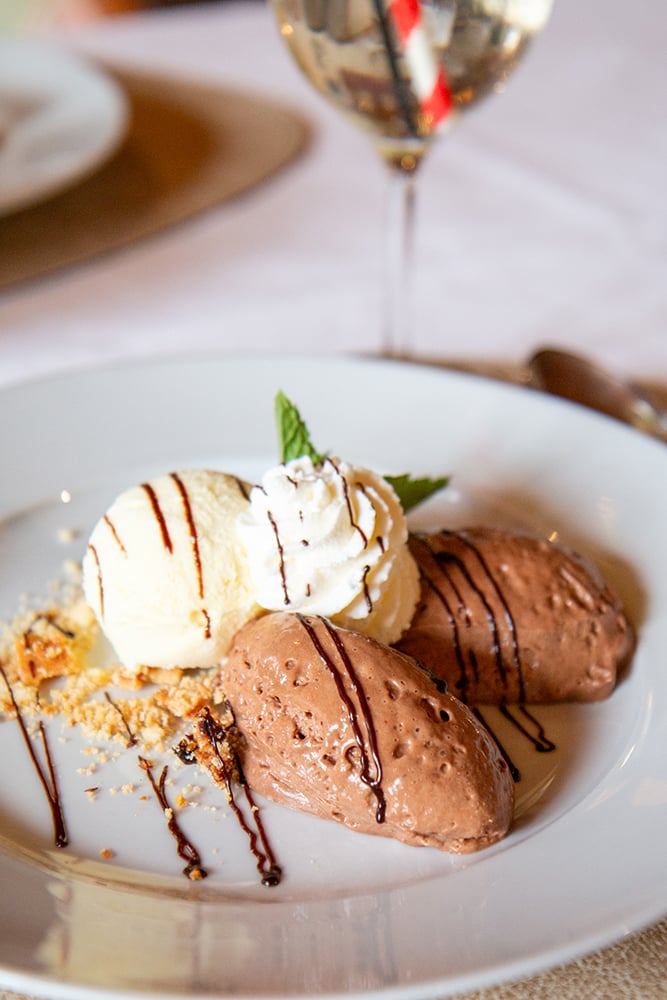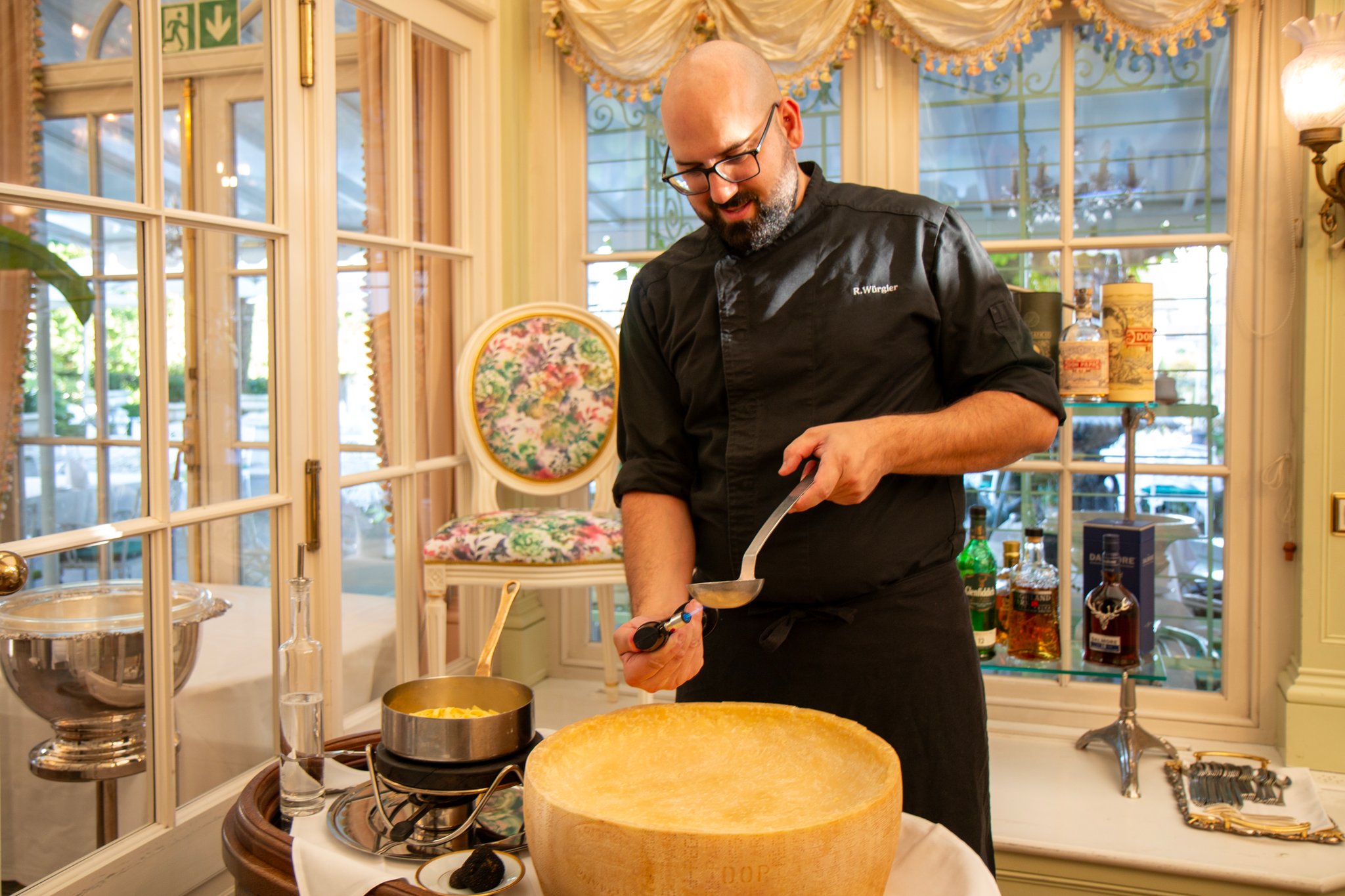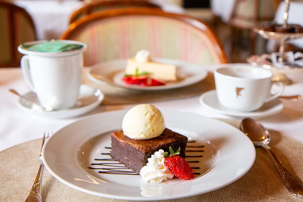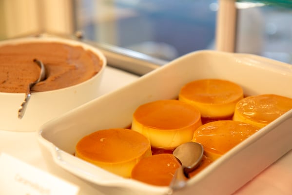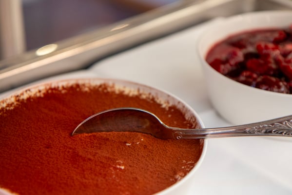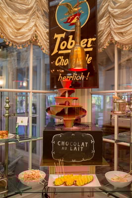 Das Dessertbuffet ist wahrhaft ein Schlaraffenland! Sie finden, eingebettet um den stolz thronenden Schokoladenbrunnen, kleine Köstlichkeiten wie hausgemachtes Schokoladenmousse, Tiramisu oder Panna Cotta im Gläsli. Aber auch das traditionelle Caramellköpfli und die hausgemachten Kuchen müssen Sie nicht vermissen. Zum Schluss begeistert der «Schneeball» Gross und Klein! Ein Joghurt-Quark Schaum mit Preiselbeeren wird bei minus 196 Grad in Stickstoff frittiert. Was für ein Highlight!