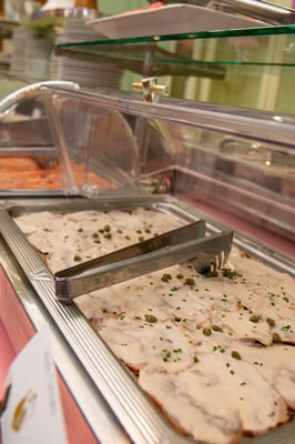 Auf unserem Schlemmer- Buffet lassen wir jeweils bis zu 30 Gerichte mit dem gewissen Etwas erstrahlen. Das ausgiebige Vorspeisebuffet bietet kalte wie auch warme Komponenten. Auf der Suche nach der optimalen Zusammenstellung stossen Sie unter anderem auf hausgemachtes Rindstatar, Vitello Tonnato, Rindscarpaccio, Rohschinken zum selber aufschneiden und Rauchlachs aber auch verschiedene Pasta, Fischknusperli und Poulet Curry. Natürlich darf der hausgemachte Zopf nach «Geheimrezept» nicht fehlen.